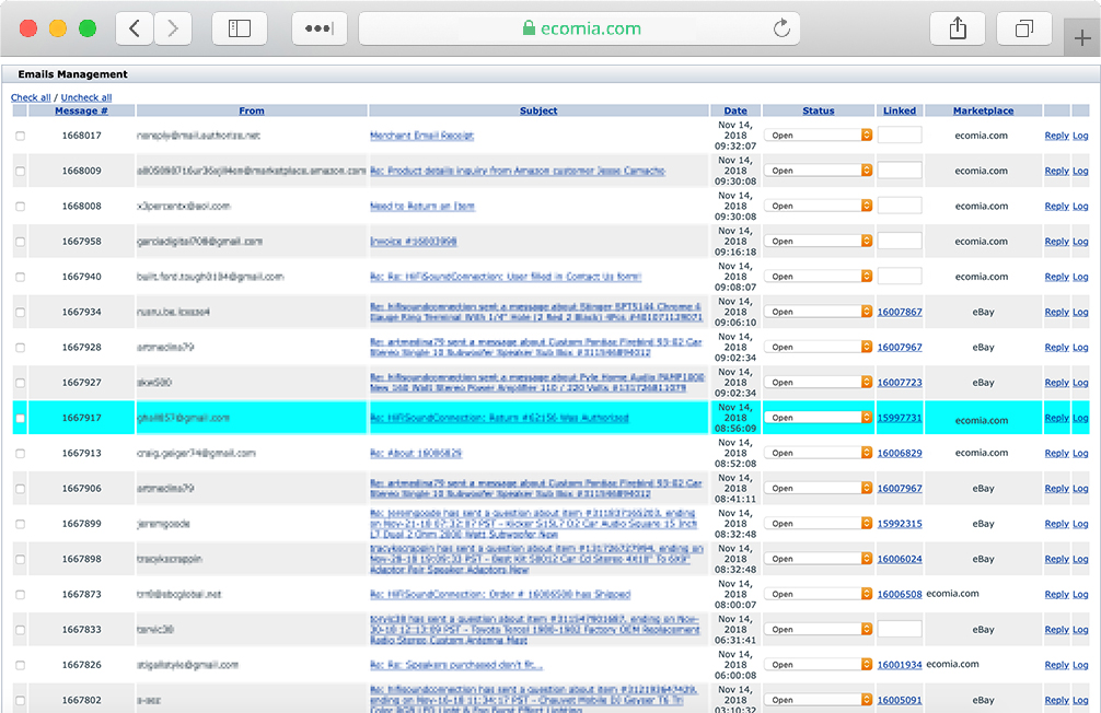 Ecomia’s CRM will link all incoming messages to the associated order, including orders received from all marketplaces. Ecomia saves you time and allows you to work faster without copy-pasting and switching back and forth, which many CRMs out there force you to do.